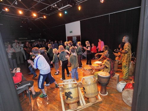 We welcome five musicians from Ghana, who are to spend two days here giving drumming workshops in schools. This evening performance will begin with a seated section and some participation by local children. After the interval, the seats will be cleared for dancing – irresistible when there’s vibrant live African music!