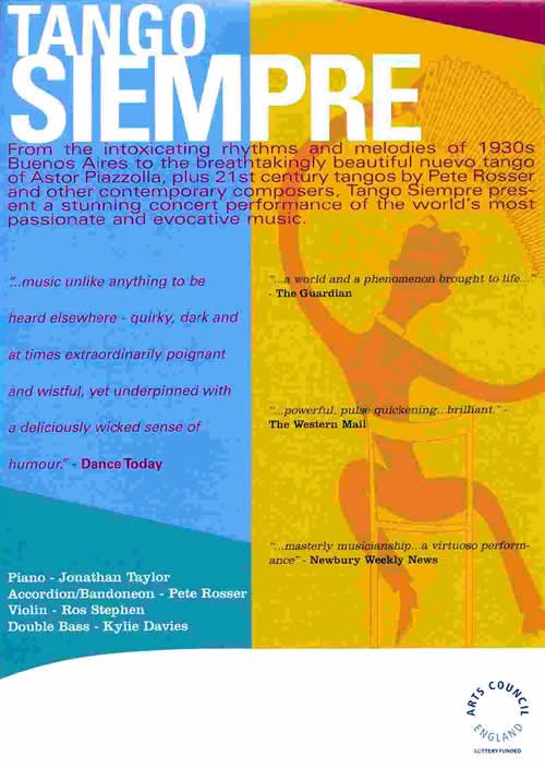 Tango Siempre Tango Siempre have developed a reputation as the U Genre: General Venue: Lyth Arts Centre Date: 20:00 2004/07/24 Age suitability: Duration: Interval: |
